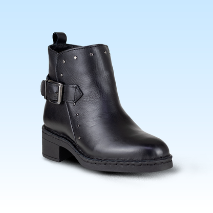 BOTIN TIPO VAQUERO DETALLE DE BROCHE LATERAL CON PIEL ENTERA GRANEADA LOBO SOLO MUJER